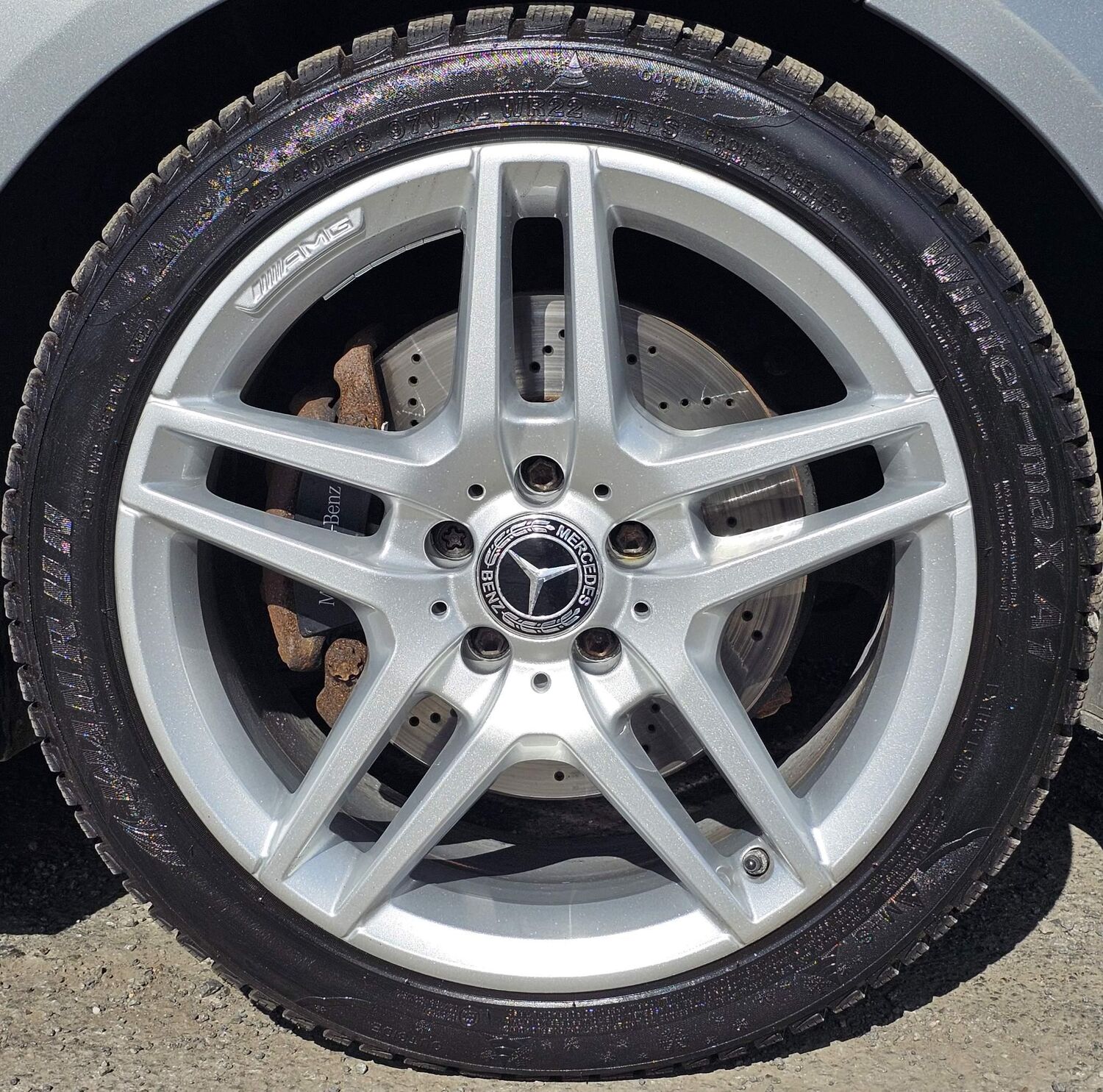 Perforated Front Brake Discs and Brake Calipers with Mercedes-Benz Lettering